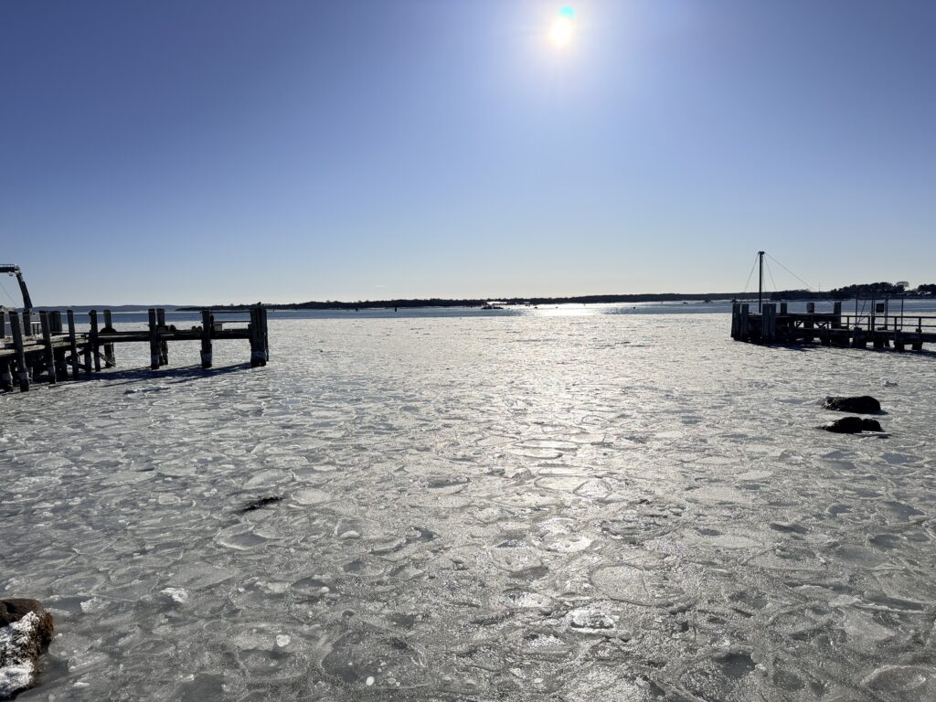 This winter has brought a kind of magic to Woods Hole that feels as though it belongs in a storybook. After days of rare, deep cold, the ocean itself has slowed into a white, shimmering stillness. Along the harbor and shoreline, the sea has frozen into delicate patterns, turning familiar views into something quietly extraordinary.