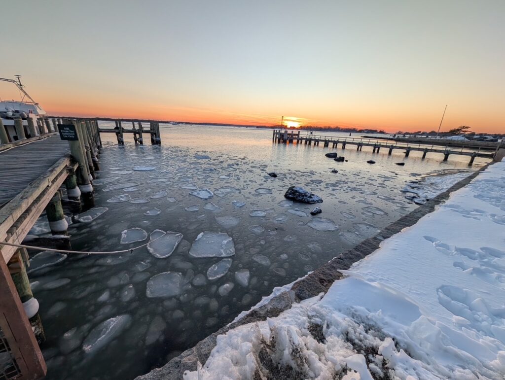There is a hushed beauty to these frozen days. Walks along the water feel slower and more intentional. Conversations linger a little longer indoors at local coffee shop windows, watching the sun sparkle across ice instead of waves. Even longtime locals have been heard marveling at the sight, shaking their heads with smiles that say this does not happen often.